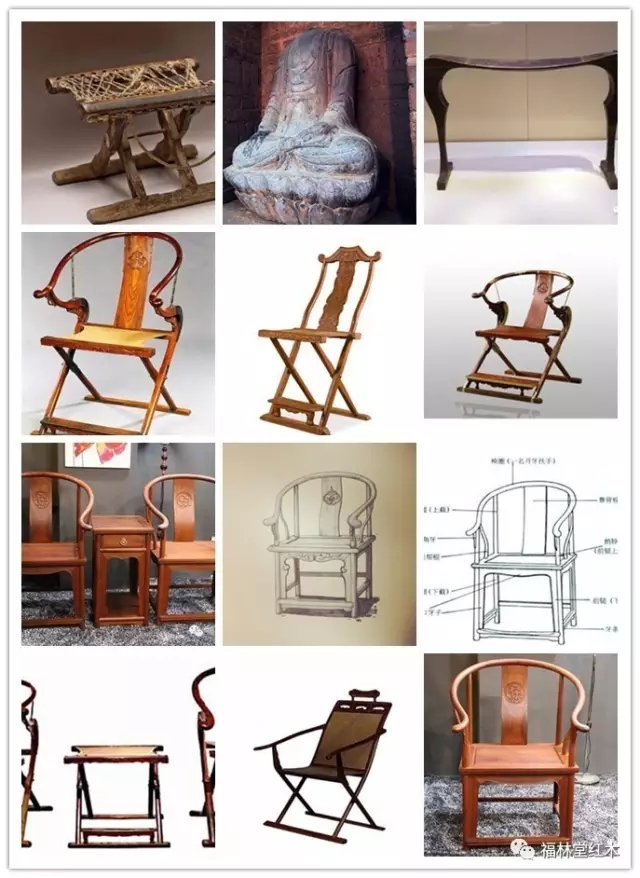 上圖就是椅凳類古典家具的馬扎、圈椅、交椅,可以欣賞一下。